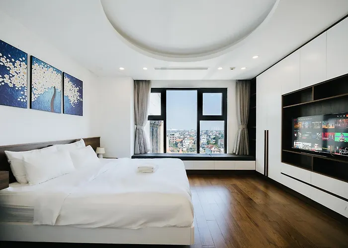 D'Leroi Soleil - Modern Apartment By West Lake ハノイ市に宿泊すると、ホーチミン廟から3.7km離れた所のテラスでリラックスできます。 周辺エリアの探索には、敷地内で自転車をレンタルできます。